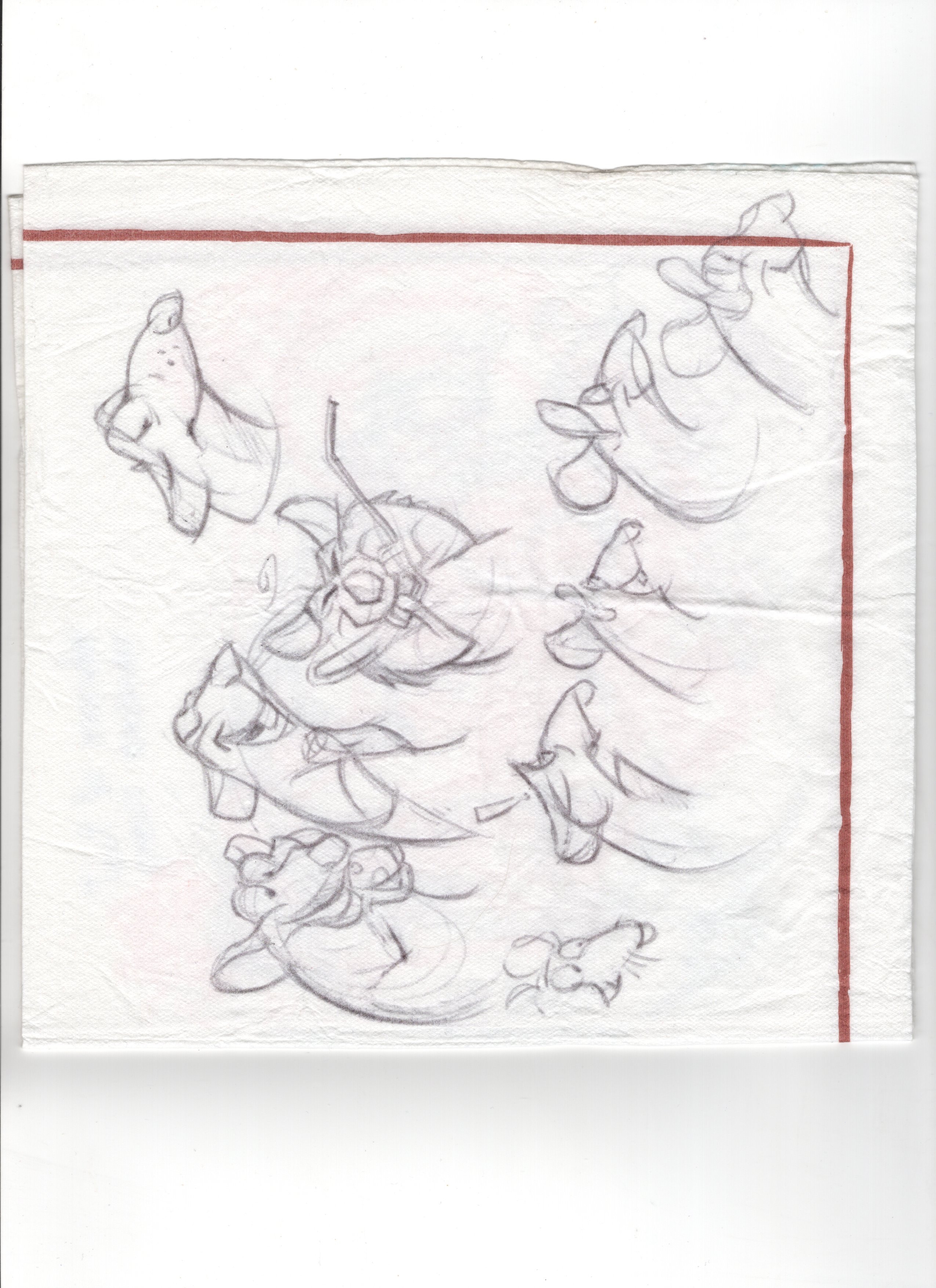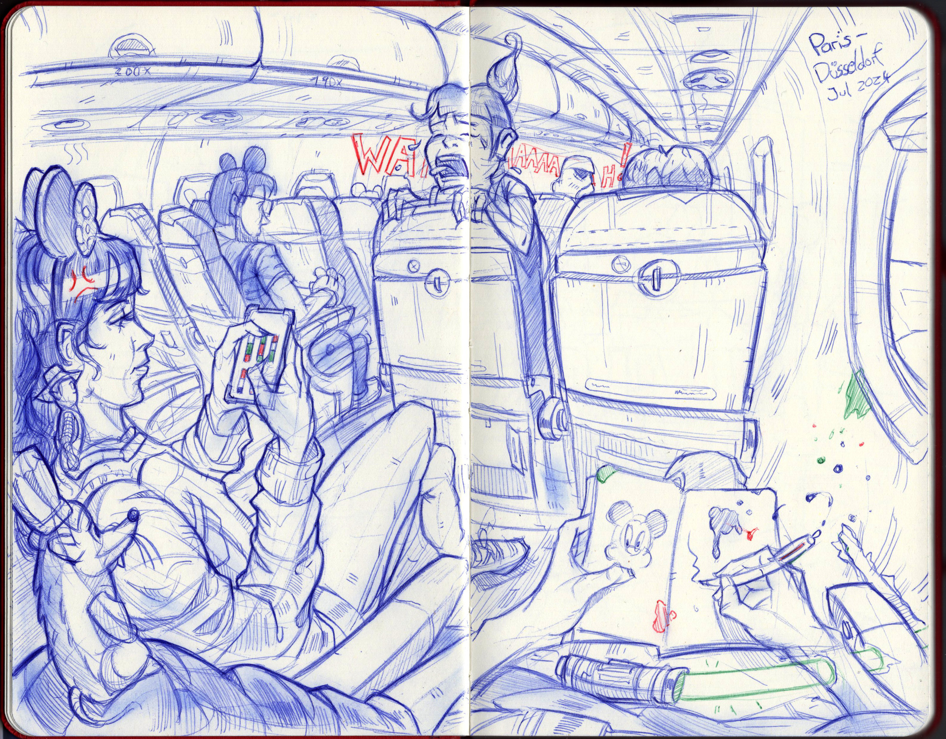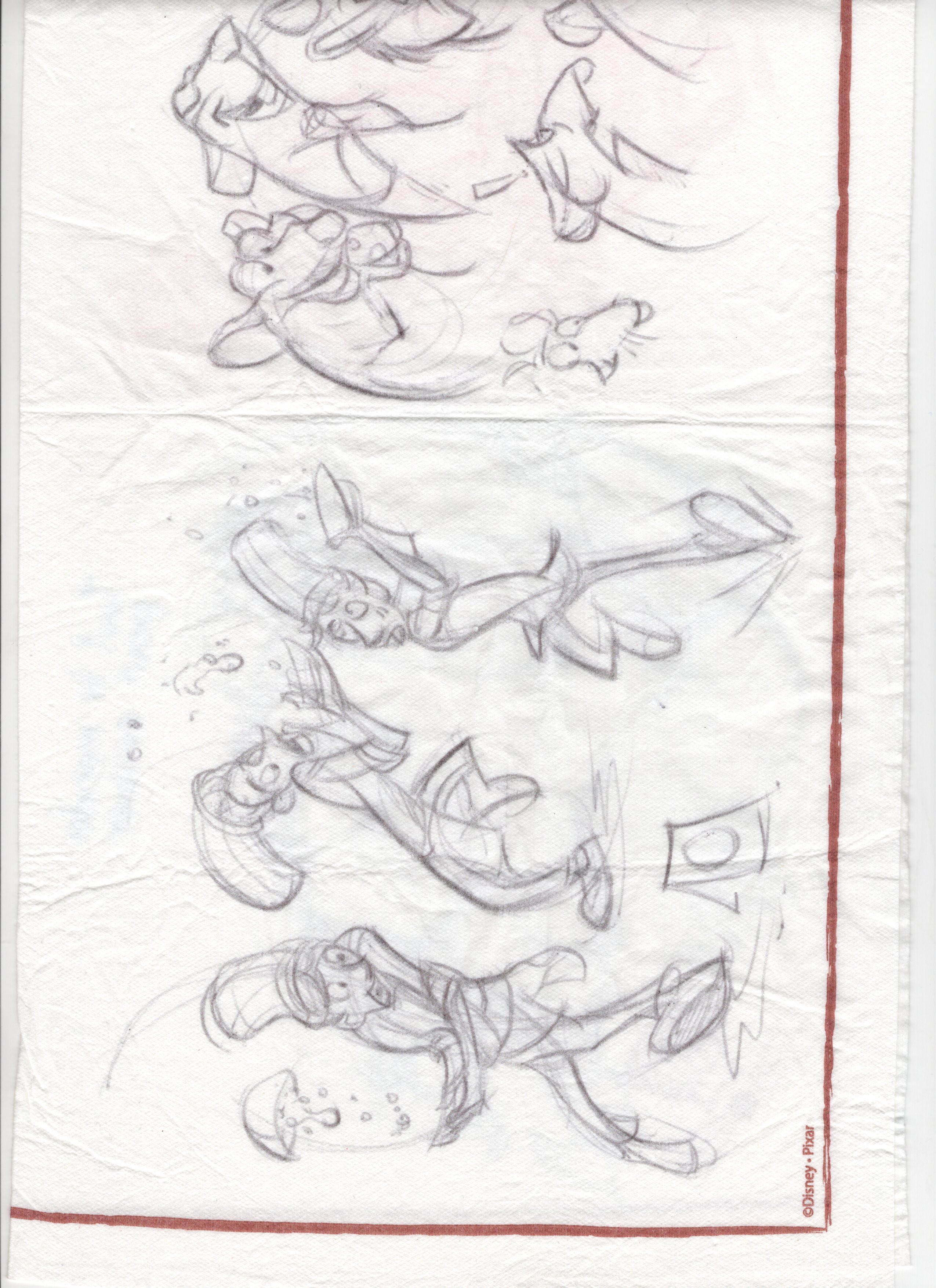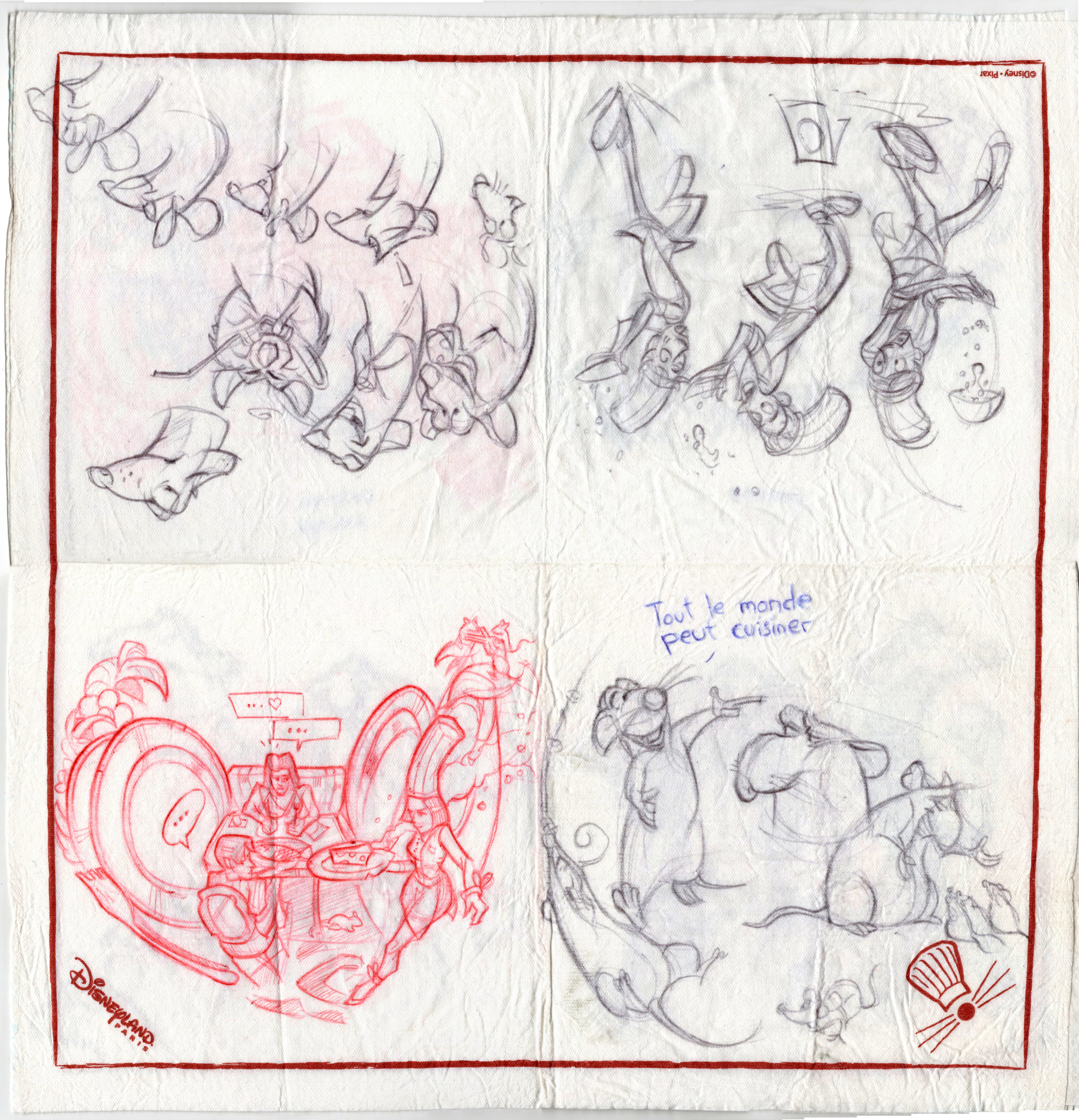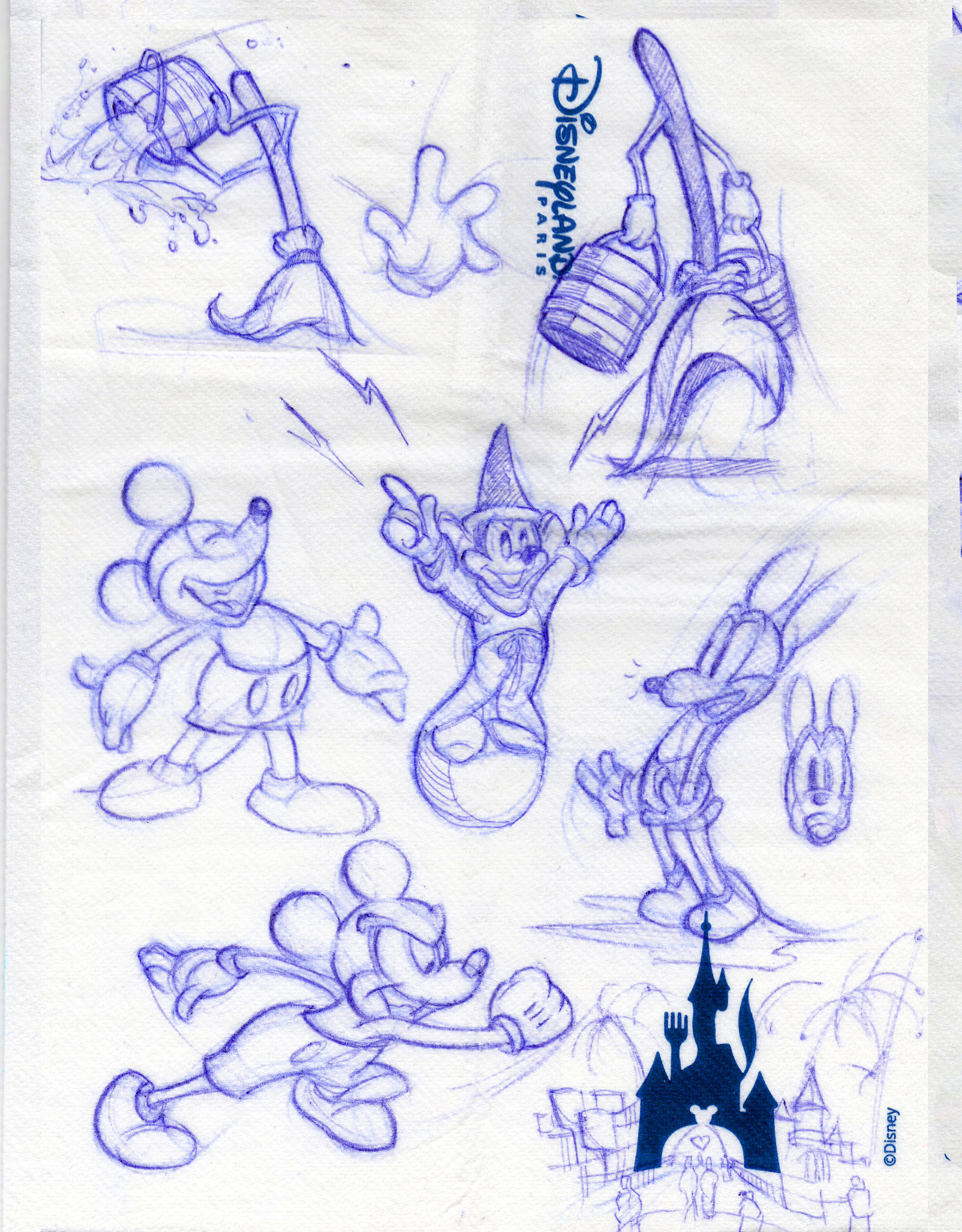 Trip to Disneyland Paris, Livesketch, Ballpoint Pen Napkin and Sketchbook.